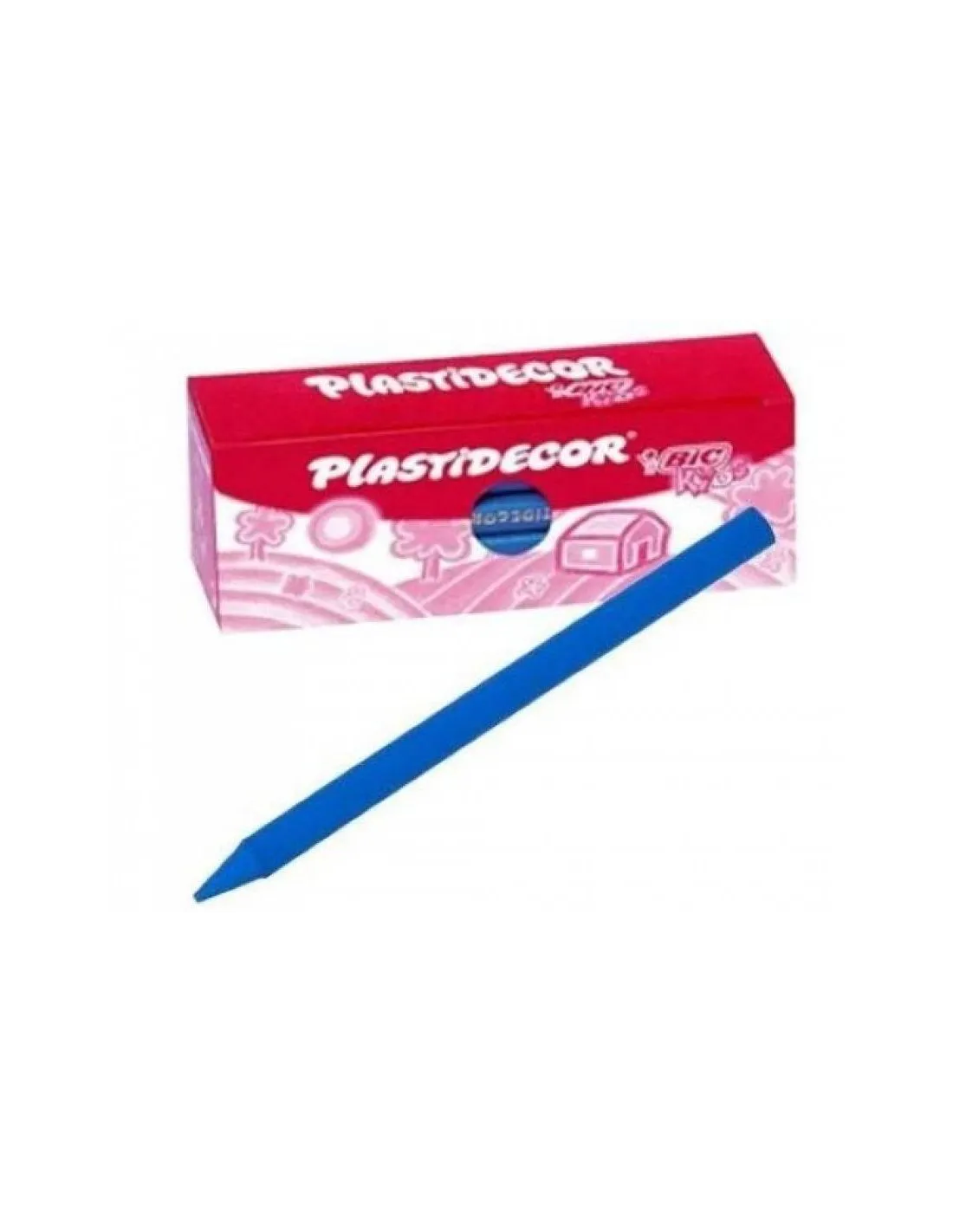 BICCeras Plastidecor plásticas Bic Kids , utilizables sobre papel satinado. Se les puede sacar punta. Son borrables. No ensucian. Muy resistentes. Buena capacidad cubriente. Caja de 25 ceras del mismo color.