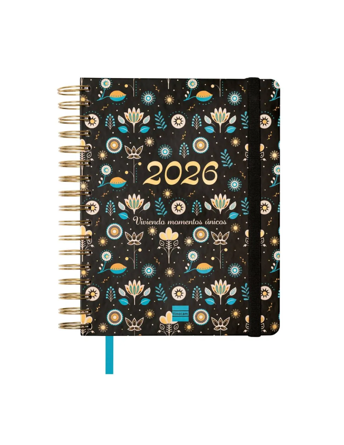 El diseño interior está decorado a todo color y la anualidad dispone de planificación de cuadros al inicio de cada mes.Materiales principales: Tapa de cartón forrado con peliculado mate antirayaduras. Espiral doble metálica.