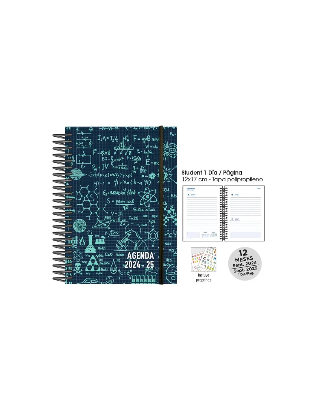 Agenda Senfort escolar Student decorada, diseño interior día por página 12 meses de septiembre a septiembre, encuadernada con tapas plásticas de polipropileno y espiral plástica, contiene 2 hojas de pegatinas.