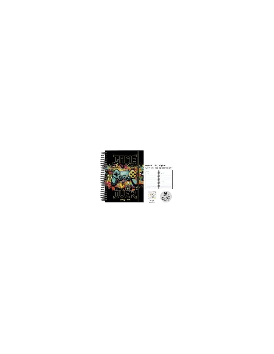 Agenda Senfort escolar Student decorada, diseño interior día por página 12 meses de septiembre a septiembre, encuadernada con tapas plásticas de polipropileno y espiral plástica, contiene 2 hojas de pegatinas.
