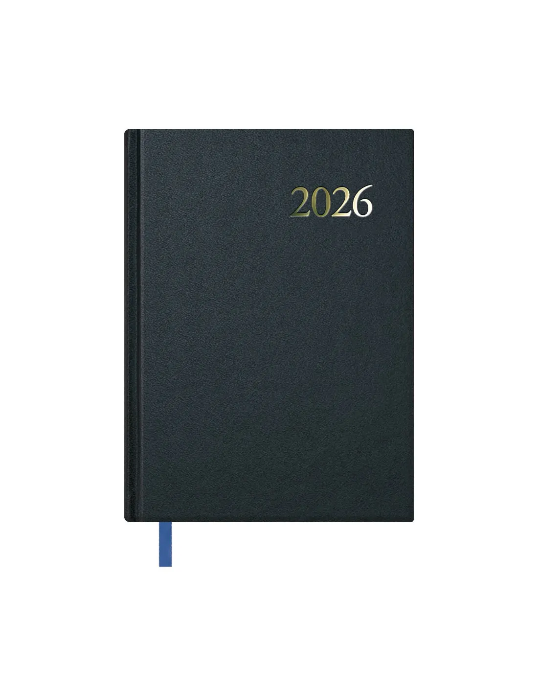 Agenda Segovia con cubierta realizada en material vinílico con cartón contracolado de primera calidad. Estampación del año con película de color ORO en la cubierta.