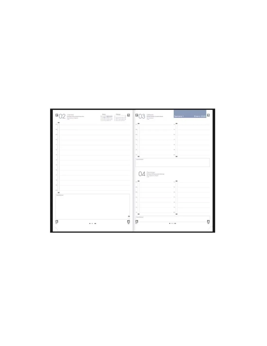 La agenda Minimal de Oxford es ergonómica ya que su sistema de encuadernación permite la apertura en plano para una fácil escritura
