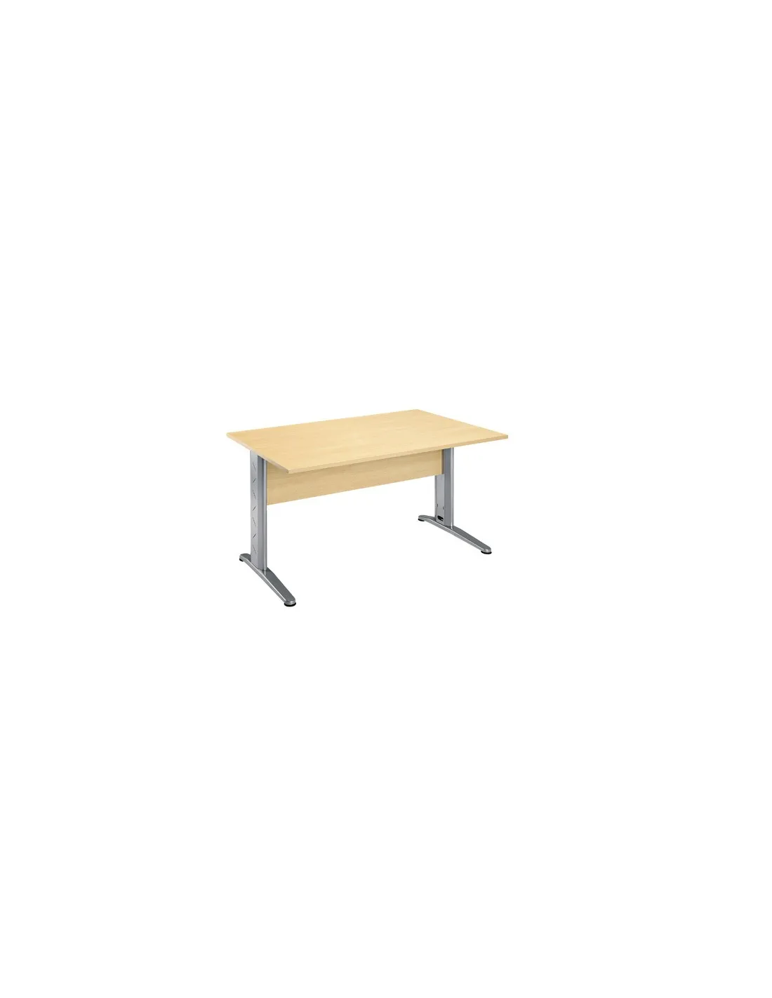 Mesa oficina sobremesa color haya patas metalicas color alumnio con faldon con pasacables.Calzos regulables en altura. Dimensiones: Alt 73 x An 80 x largo 120 cm.Tablero de partículas de melamina de 22 mmm de grosor con cantos redondeadosMesa oficina sobremesa color haya patas metalicas color alumnio con faldon con pasacables.Calzos regulables en altura.