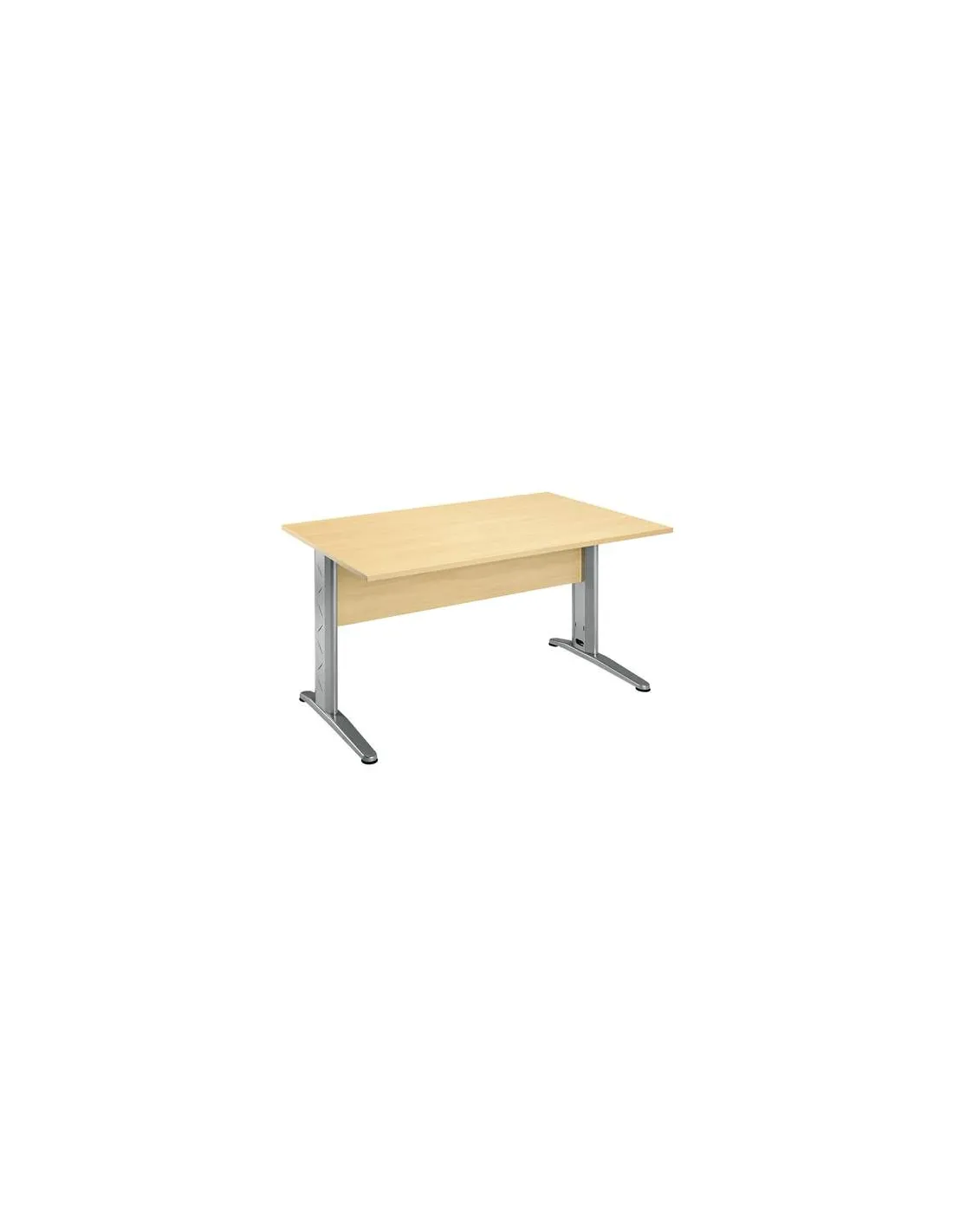 Mesa oficina sobremesa color haya patas metalicas color alumnio con faldon con pasacables.Calzos regulables en altura. Dimensiones: Alt 73 x An 80 x largo 140 cm.Tablero de partículas de melamina de 22 mmm de grosor con cantos redondeadosMesa oficina sobremesa color haya patas metalicas color alumnio con faldon con pasacables.Calzos regulables en altura. Dimensiones: Alt 73 x An 80 x largo 140 cm.