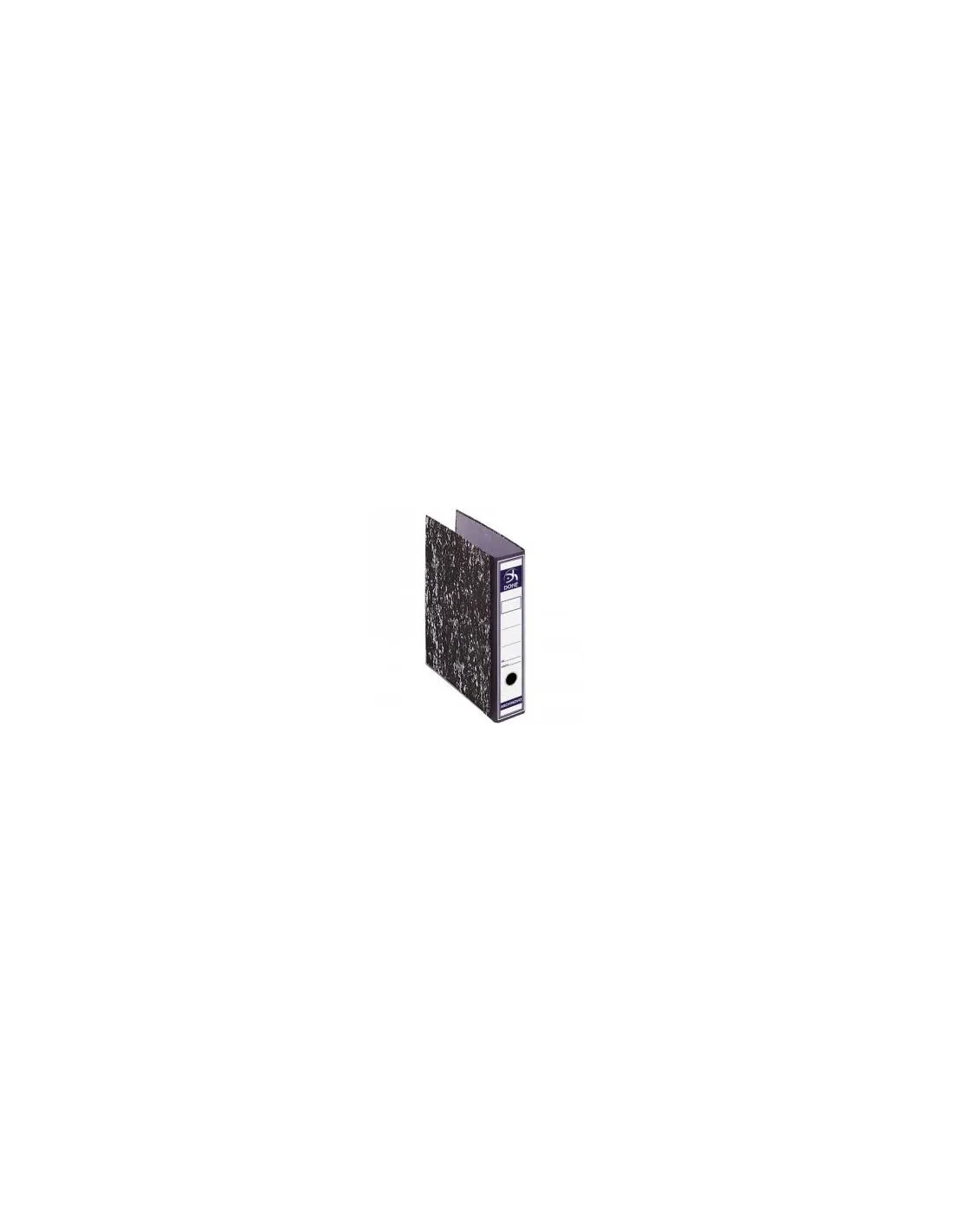 Archivadores jaspeados negros, en cartón forrado con papel impreso, 2 anillas con lomo de 75mm cantoneras metálicas y palanca de máxima calidad.