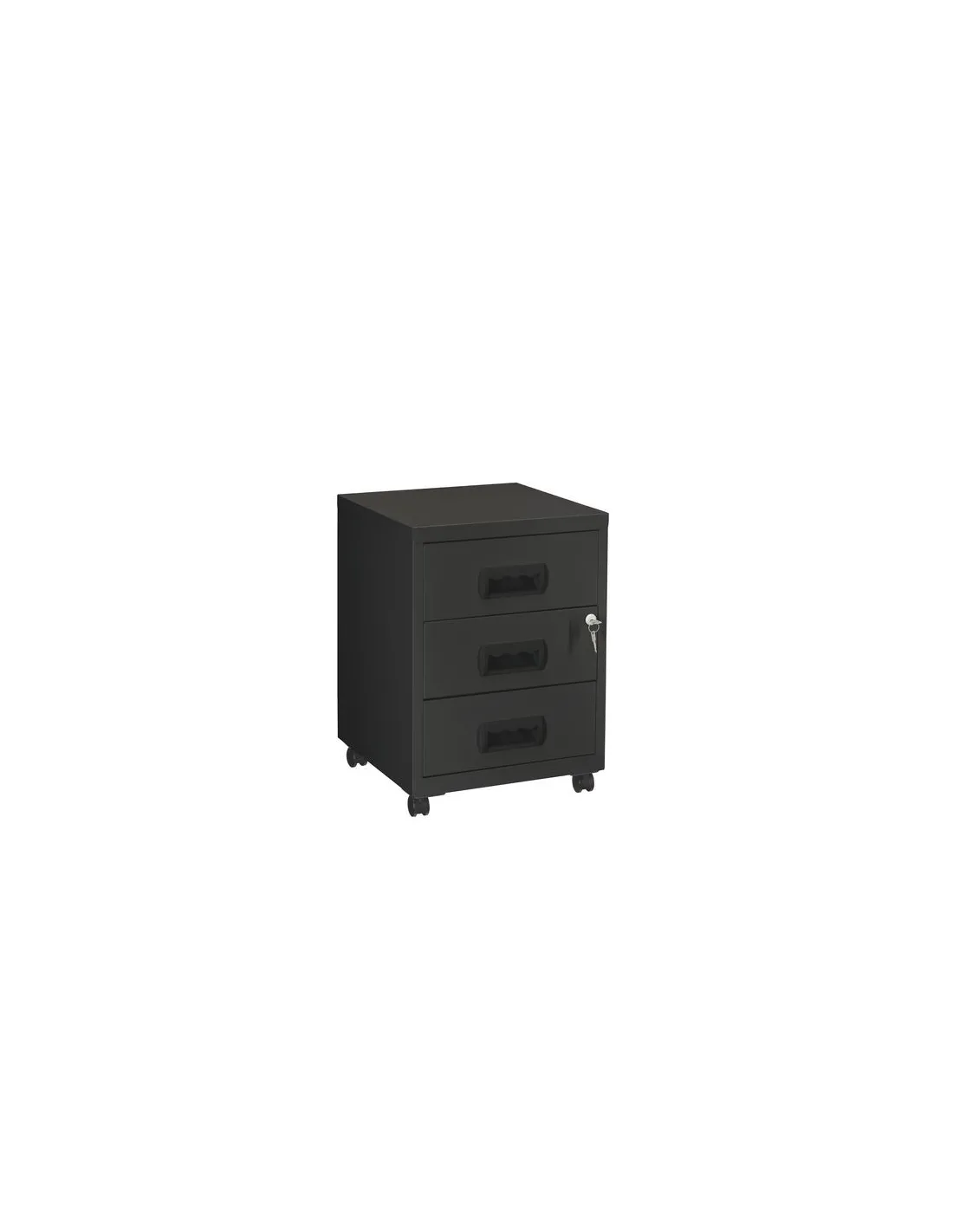 Cajonera metalica con ruedas budget 3 cajones, Estructura : Monobloc chapa de acero, acabado epoxi granulado antirayaduras. Deslizamiento cajones dezlisantes sobre guías de bolas. Cerradura ( 2 llaves incluidas). 4 ruedas multidireccionales.