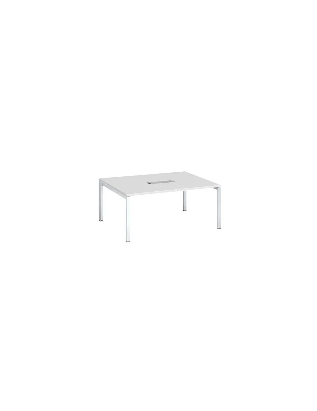 Estructura: tablero de paneles de particulas melaminada antirayaduras y antireflejo , grosor 25 mm. Cantos ABS antichoque grosor 2mm. Pasacable en el tablero (41,5 x 10,5 cm) con caja metalica y tapa abatible de plastico color aluminio con 2 huecos para los cables. Patas de tubo metalico ( cuadrada 50 x 50mm) en forma de arco lacado epoxi. Barra de refuerzo por debajo del tablero. Calzos de regulación en altura. Medidas: alt, 72 x ancho 160 x fondo 120 cm. Capacidad 8 personasEstructura: tablero de paneles de particulas melaminada antirayaduras y antireflejo , grosor 25 mm. Cantos ABS antichoque grosor 2mm. Pasacable en el tablero (41,5 x 10,5 cm) con caja metalica y tapa abatible de plastico color aluminio con 2 huecos para los cables