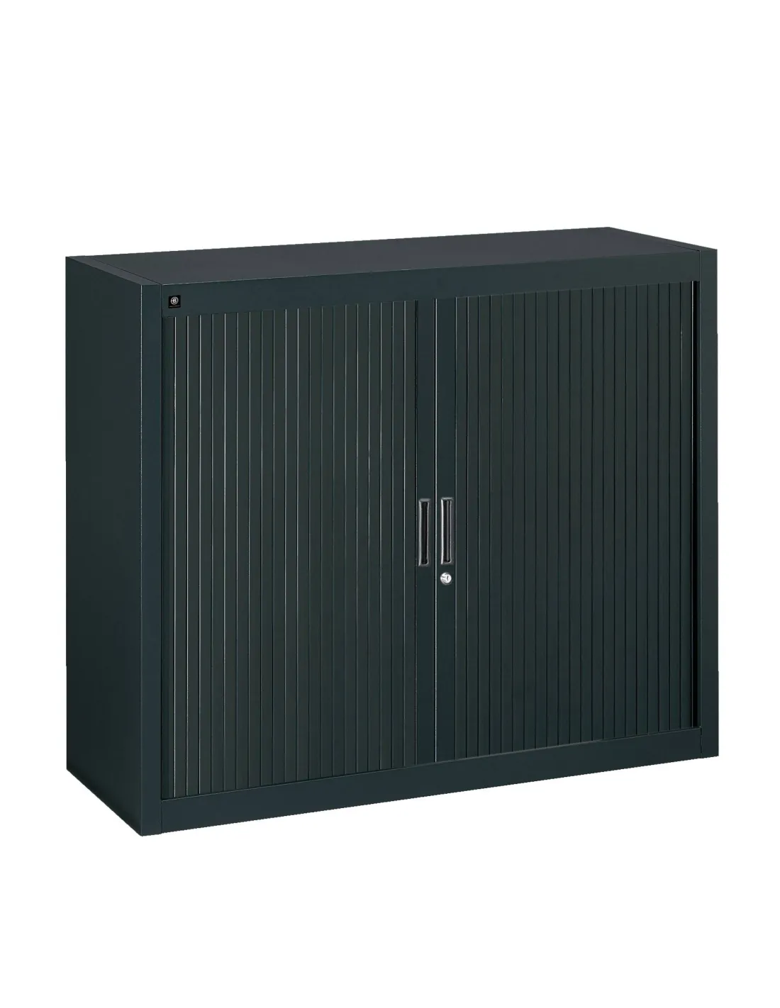 Extuctura: Cuerpo en chapa de acero 8/10, acabado lacado epoxi resistentes a choques y ralladuras, cierre con persianas de láminas PVC 25 mm antifuego M1,se ocultan totalmente en los laterales para un acceso y una visibilidad total del contenido del armario, tiradores encastrados del mismo color que el armario. Cerradura con llave.
