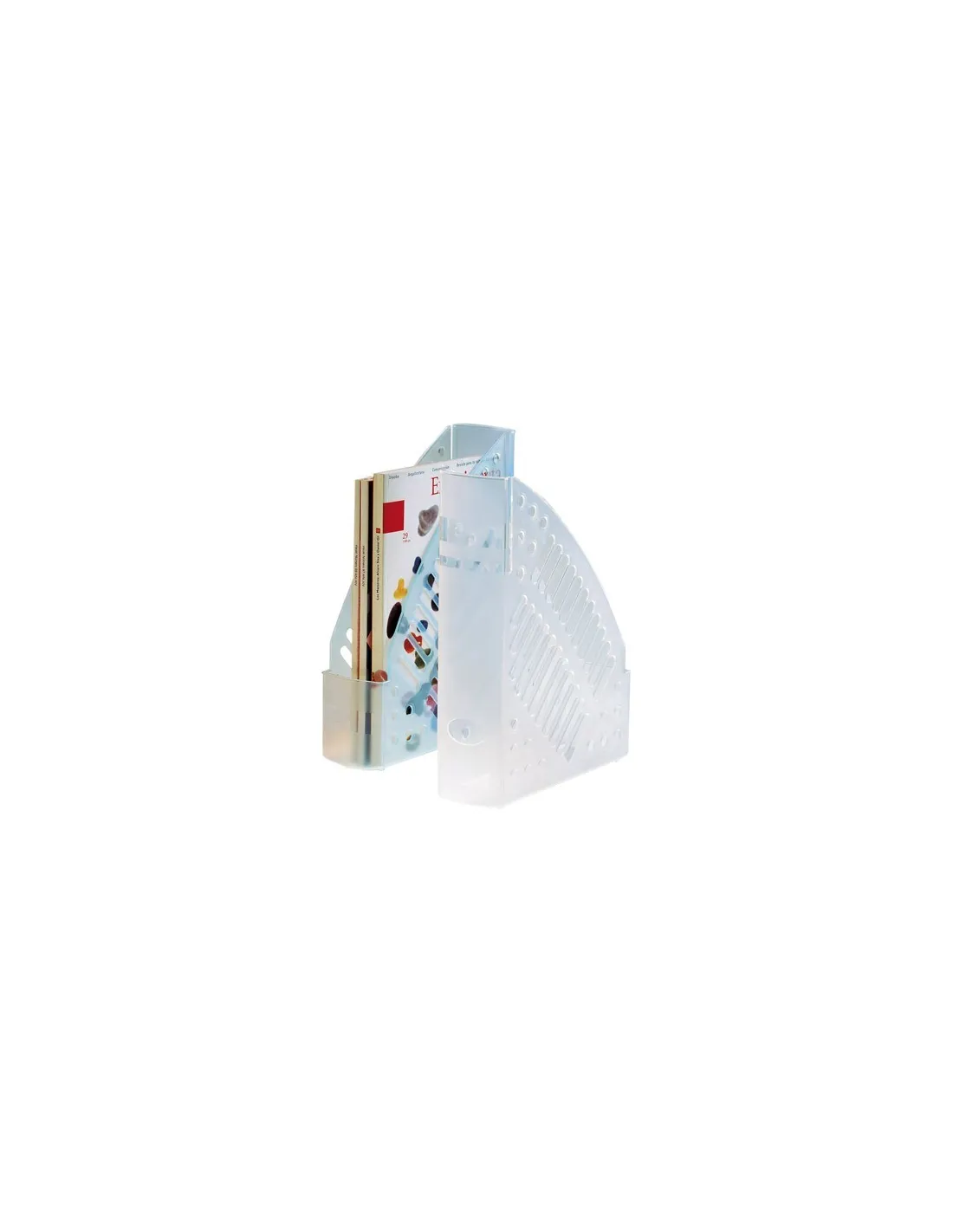 Revistero translúcido transparente de poliestireno.