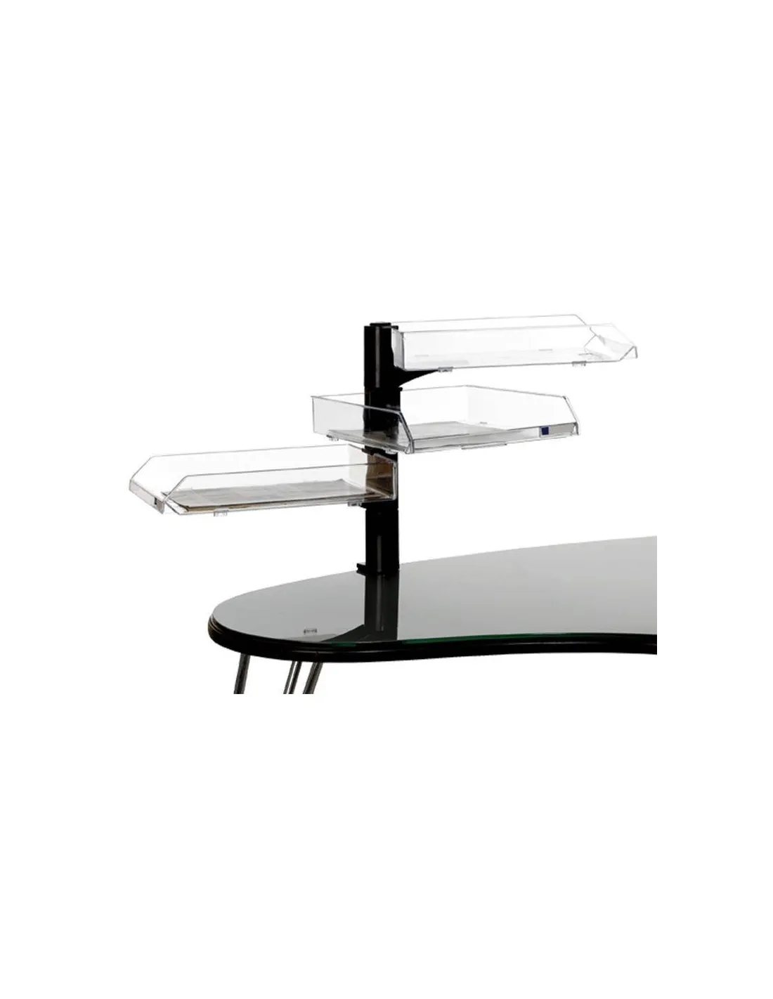Conjunto de 3 bandejas con soporte negro giratorio TurboRack y bandejas transparentes Archivo 2000.