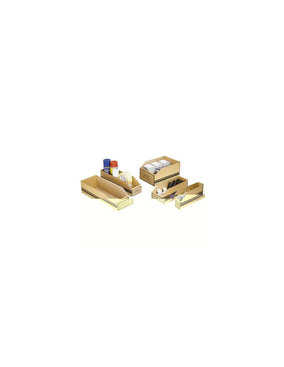 Sólidas: cartón marrón ultra resistente, doble grosor en parte delantera y trasera. Acceso inmediato al contenido. Etiquetas preimpresas. Entregadas sin montar, montaje rápido. Capacidad 3,3L.Caja de estocaje cartón 300x100x110mm