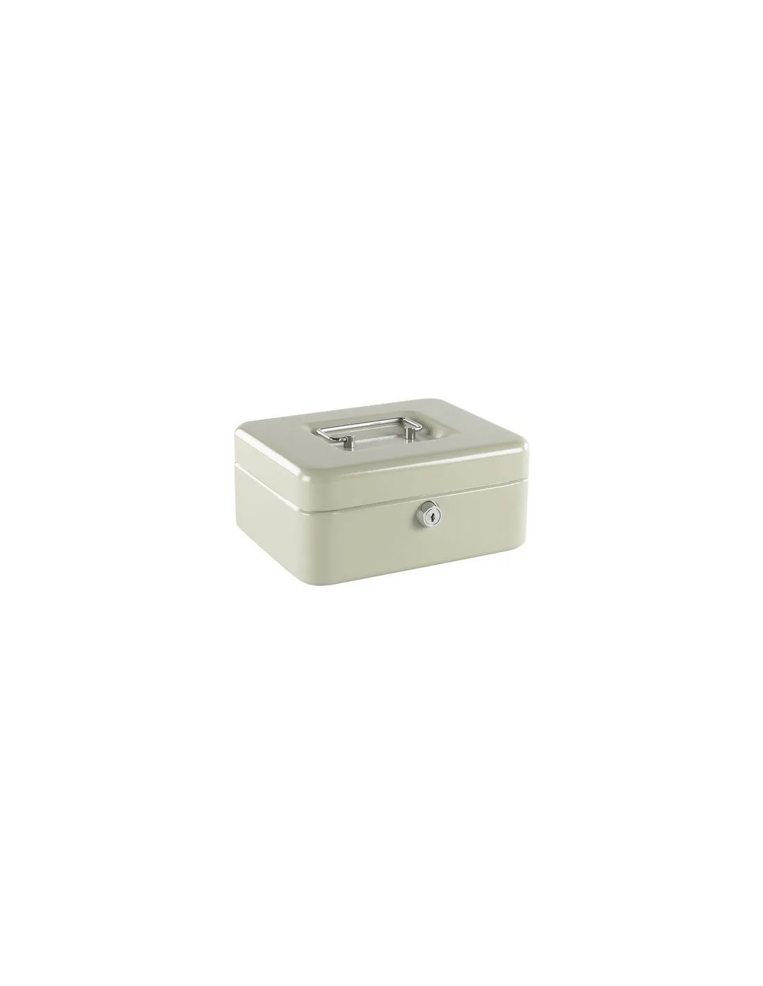 Plancha de acero troquelado, grosor 0,8 mm. 5 compartimentos, extraíble, ABS. Antichoques y antirrayado. Cerradura de seguridad, con 2 llaves. Bisagra invisible. Mango encastado de cable de acero. Medidas: 9x20x16cm. Color beige.Caja de caudales 20cm beige