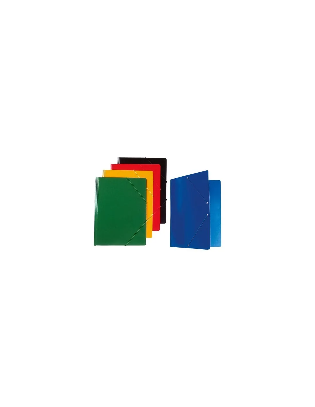 Formato folio. Cartón del n.º 7 brillante. Medidas: 340 x 260 mm. Carpeta con gomas tres solapas. Color: Verde.Carpeta con gomas y tres solapas de colores formato folio, cartón brillante de 700 g. Medidas 340 x 260 mm