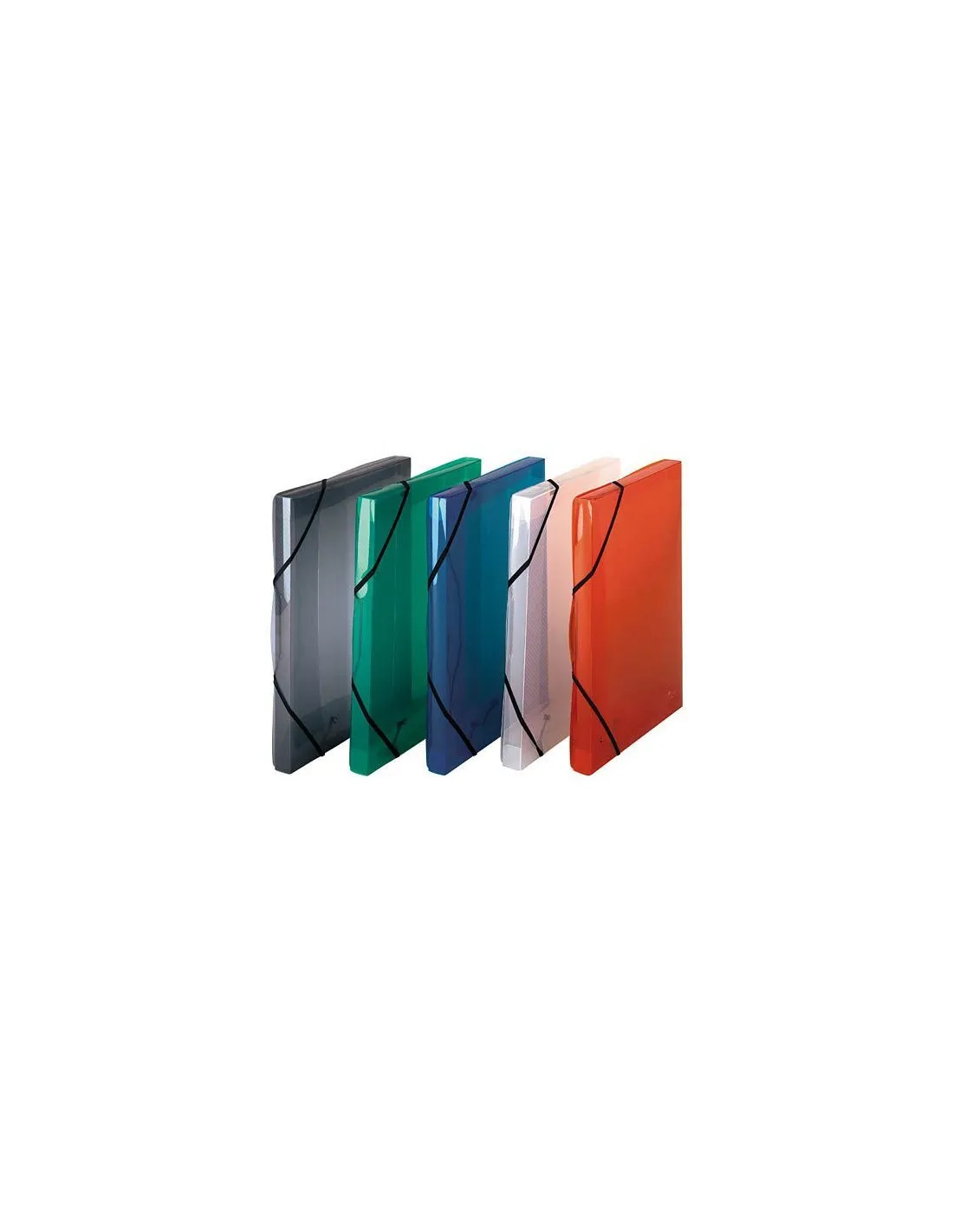 Carpeta de proyectos fabricada en polipropileno translúcido reciclable. Lomo de 2,5 cm. Cierre con goma. Se entregan montadas, listas para usar. Para formatos hasta 24 x 32 cm. A4. Colores surtidos aleatorios: azul, gris, transparente, rosa o lila.Carpetas con gomas A4 Polipropileno 2,5 cm colores surtidos Elba Carpeta de proyectos fabricada en polipropileno translúcido reciclable. Lomo de 2,5 cm. Cierre con goma
