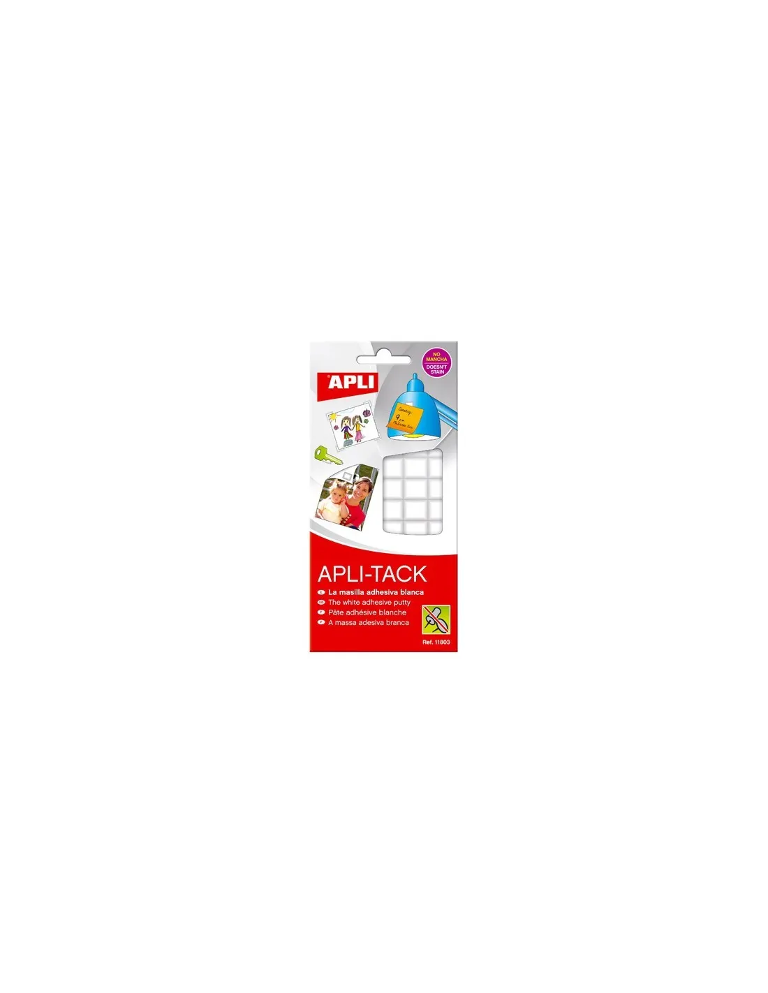Masilla adhesiva blanca de 75 gr, cuarteada para su fácil extracción, reutilizable, ideal para fijar objetos sin necesidad de hacer agujeros: posters, notas, postales, calendarios, etc.Masilla adhesiva blanca apli-tack