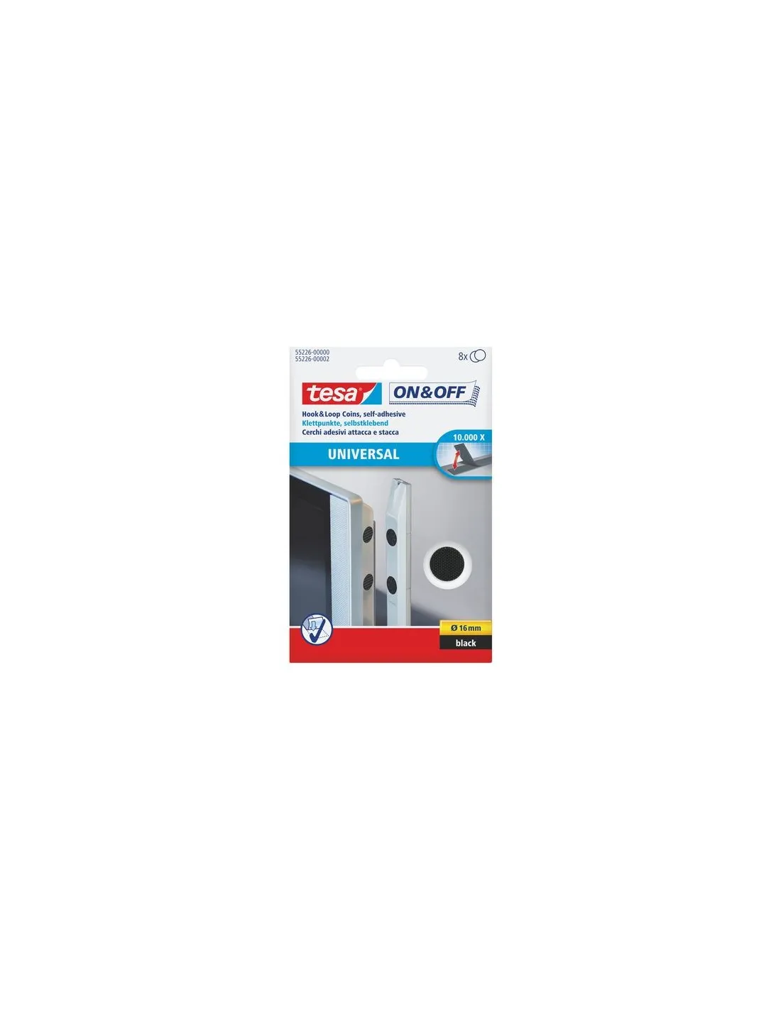 Pastilla de cierre Tesa, una solución versatil para organizar y fijar objetos ligeros y tejidos, permite un agarre firme y seguro de objetos ligeros, se puede abrir y cerrar hasta 10.000 veces. Círculos de cierre de 16 mm de diametro, 8 paresPastilla de cierre Tesa, una solución versatil para organizar y fijar objetos ligeros y tejidos, permite un agarre firme y seguro de objetos ligeros, se puede abrir y cerrar hasta 10.000 veces. Círculos de cierre de 16 mm de diametro, 8 pares