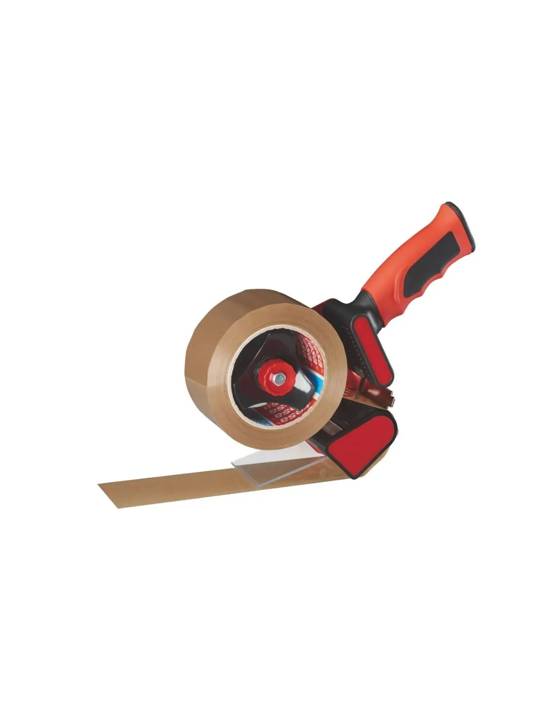 Portarrollos cinta embalar cuerpo metal. Mango de silicona, con freno para controlar la intensidad de desbobinado. Cuchilla retractable para un corte más fácil y seguro. Para cinta adhesiva de ancho 50 mm. ( Cinta no incluida)
