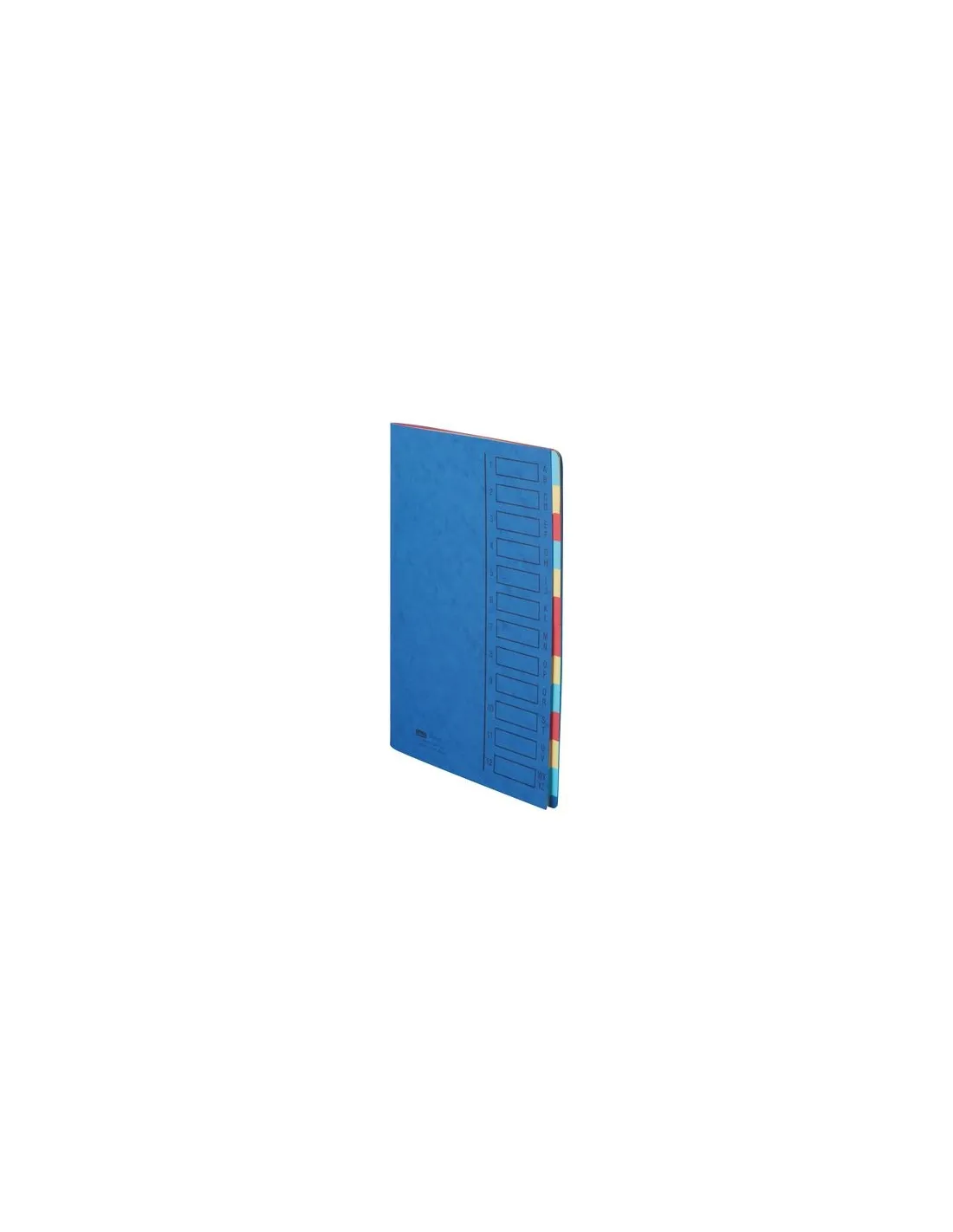 Clasificador 12 divisiones azul cartulina emey.Cubierta de cartón de 425 g. Imprimible. Divisiones interiores de 210 g. Lomo Grapado. Para formatos hasta 22 x 32 cmCubierta de cartón de 425 g. Imprimible. Divisiones interiores de 210 g. Lomo Grapado. Para formatos hasta 22 x 32 cm