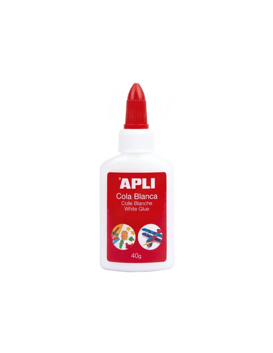 APLICola blanca de 40 g. Cola blanca líquida con un aplicador de punta y tapa superior no desmontable que permite una aplicación fácil y precisa. Fórmula libre de solventes y no tóxica. Apto para uso escolar, material seguro para el uso infantil, adecuado a la normativa. Cola blanca de máxima calidad, la boquilla no se seca.