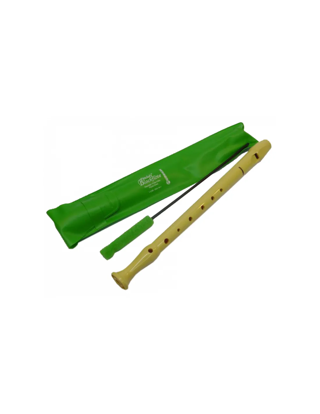 Flauta dulce con funda plastica verde y varilla limpiadora. Disponible en 5 colores