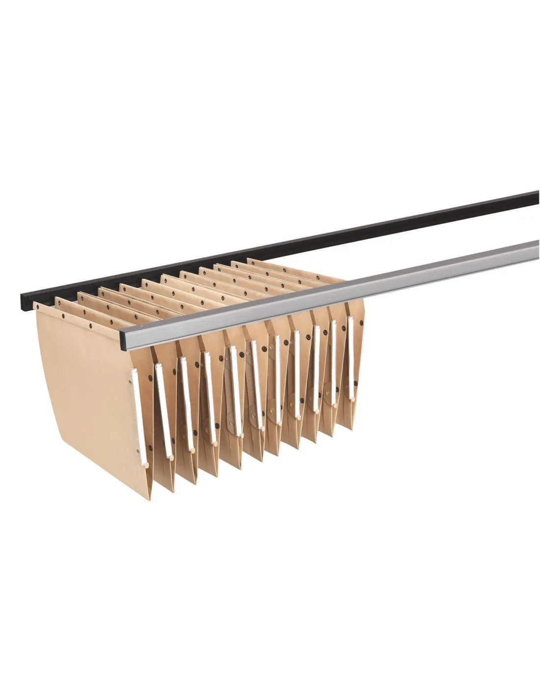 Juego de dos guias de aluminio para carpetas colgantes con agujeros para ser atornillado debajo de los estantes de madera (se incluyen los tornillos) perfiles de aluminio adaptados para archivo de carpetas colgantes .