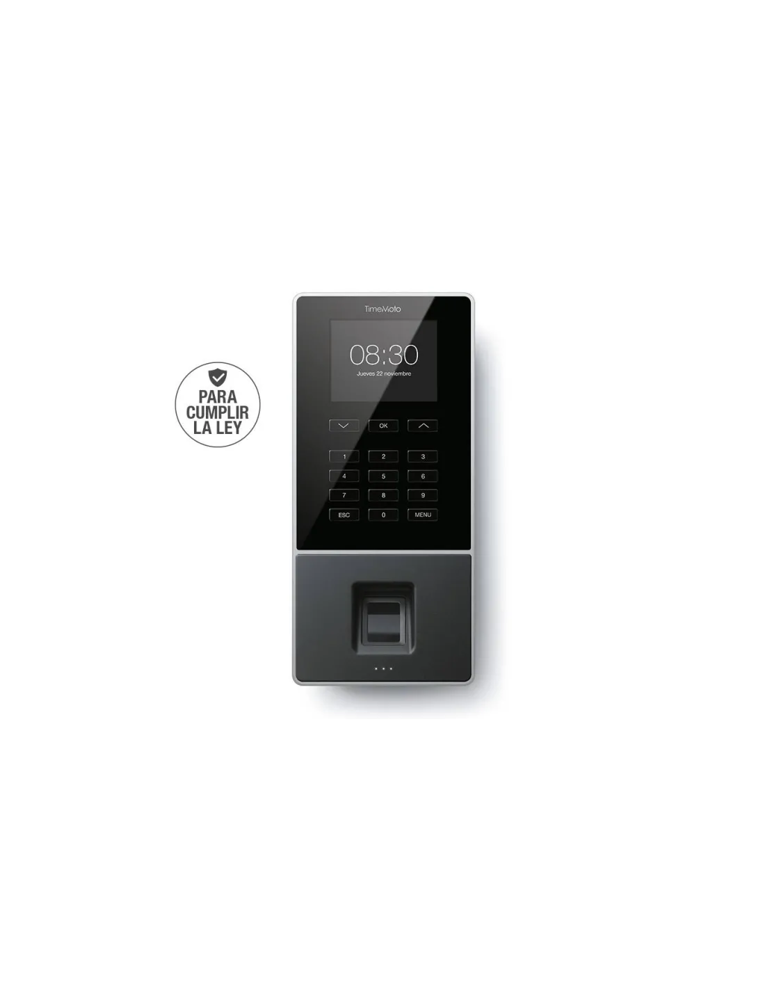 Incluye software para PC / Prueba de TimeMoto Cloud Plus Para hasta 200 usuarios / huellas digitales Lee huellas dactilares / RFID / PIN Conexión Ethernet y Wi-Fi Pantalla TFT en color de 2,8" Cumple con el RGPD Garantiza el cumplimiento del nuevo art.34 del E.T.