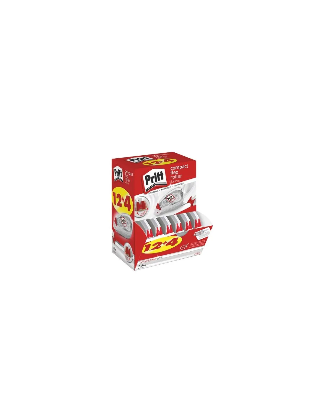 Pack 16 correctores cinta Pritt compact .Cinta correctora con nuevo diseño mejorado para una corrección fácil y flexible. Fabricada en 33% de material reciclado y embalaje 100% reciclado. Anchos de cinta 4.2 mm. Largo 8.5 m.Pack 12 + 4 Corrector Compact Flex Pritt 4.2 mm