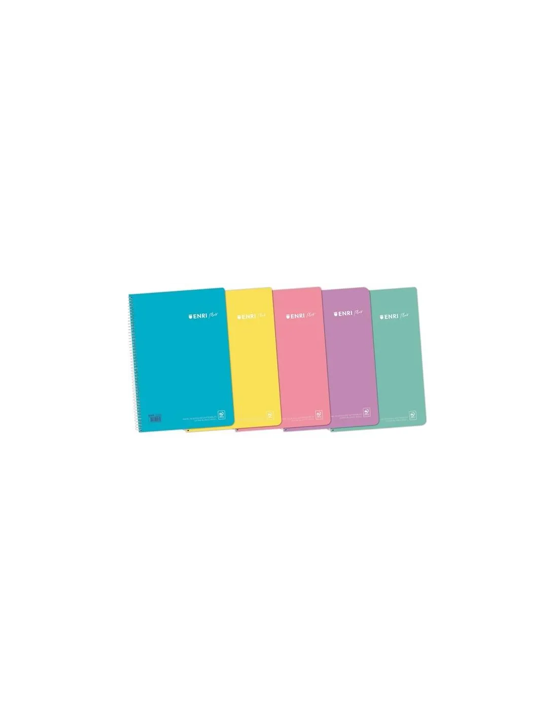 Cuaderno espiral Enri tamaño folio 215 x 310 mm tapa de plástico, hojas cuadriculadas de 90 gramos con cuadrícula de 4x4mm. Colores pastel surtidos.