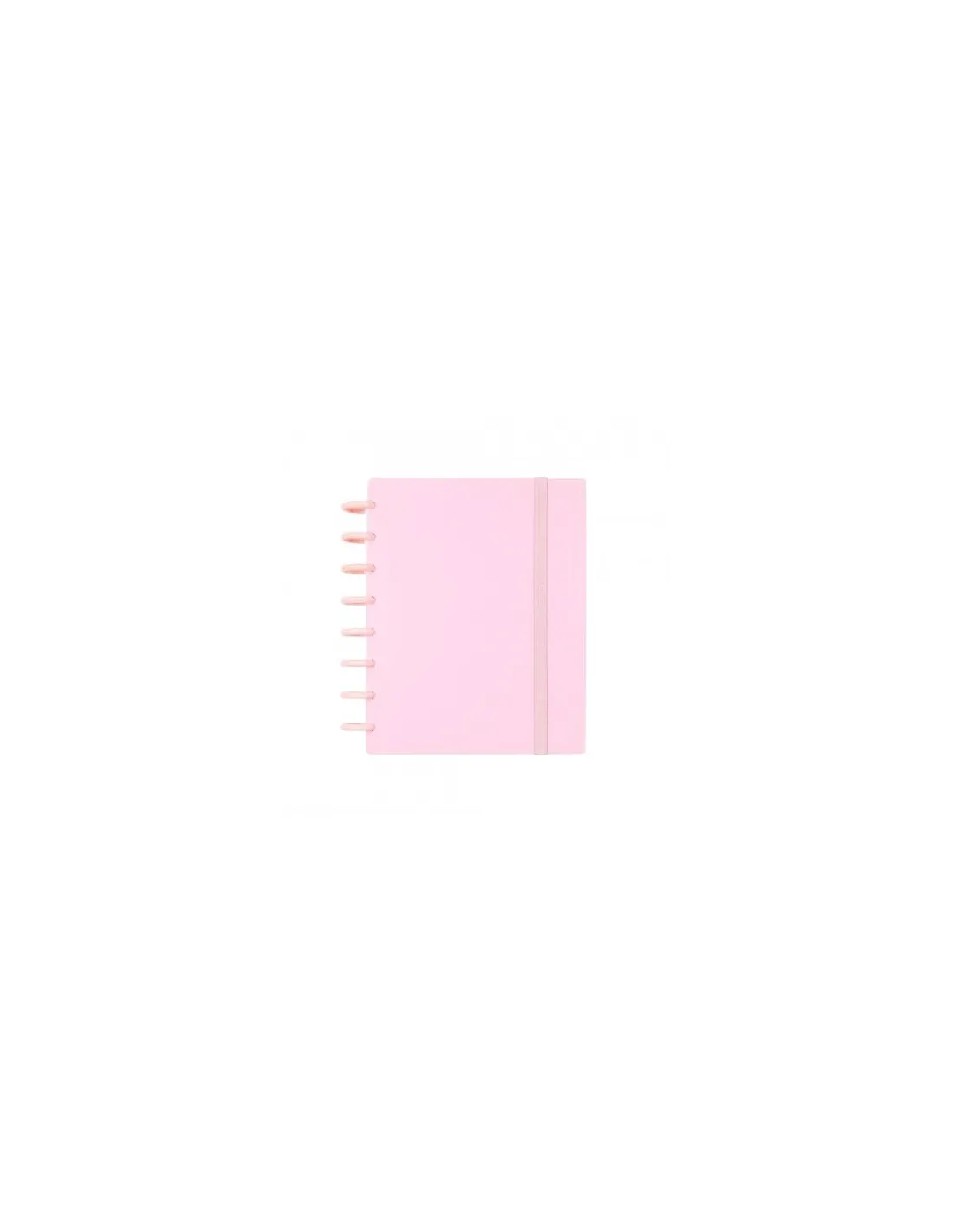 Cuaderno con 100 hojas de papel 100 gr calidad extra , goma elástica a juego y discos de plástico de 30 mm. ·