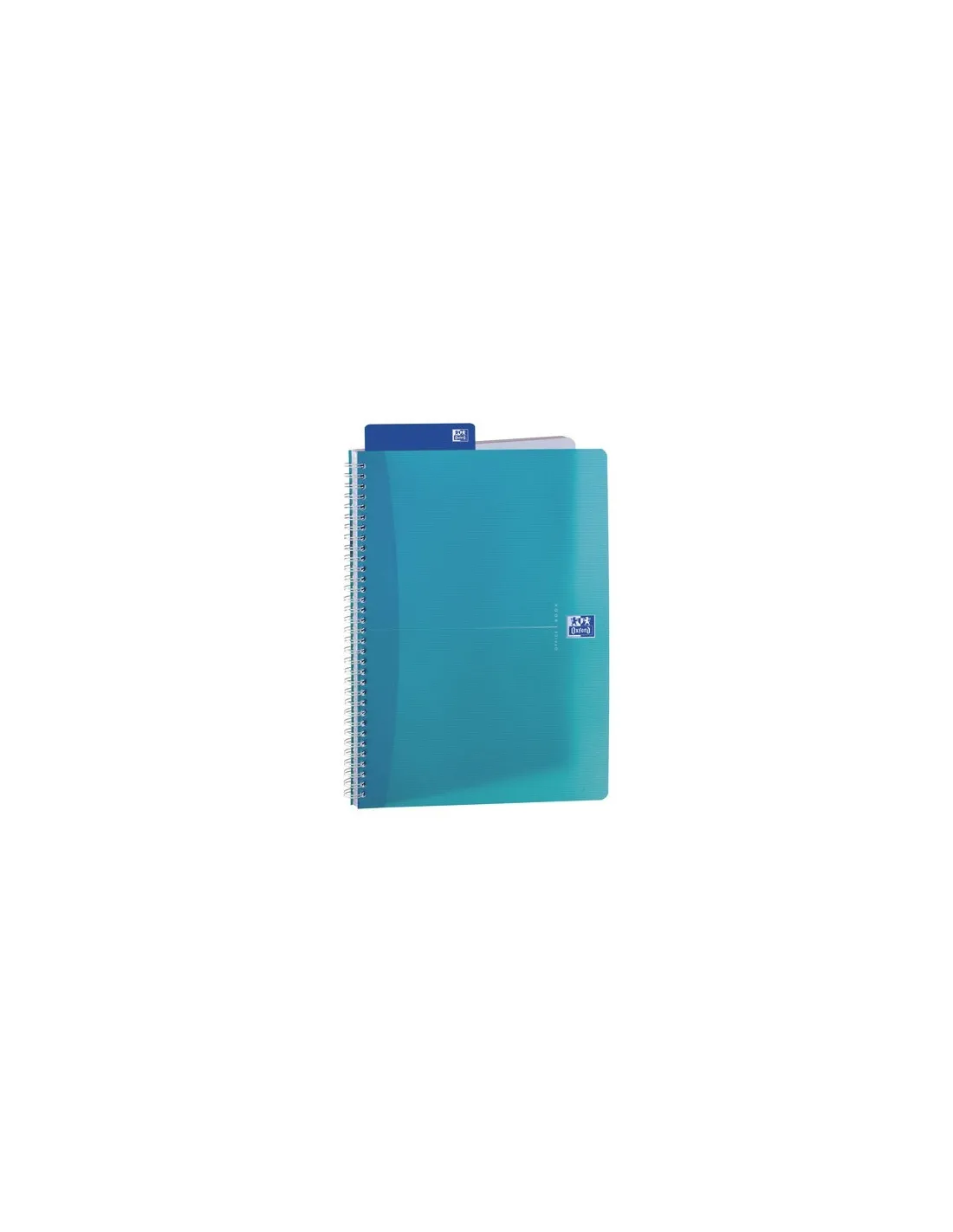 Libreta con tapa de plástico translúcido. 90 hojas. Formato A5. Surtido de 6 colores aleatorios (azul, azul claro, verde, naranja, violeta o fucsia) Cuadrícula 5 x 5.