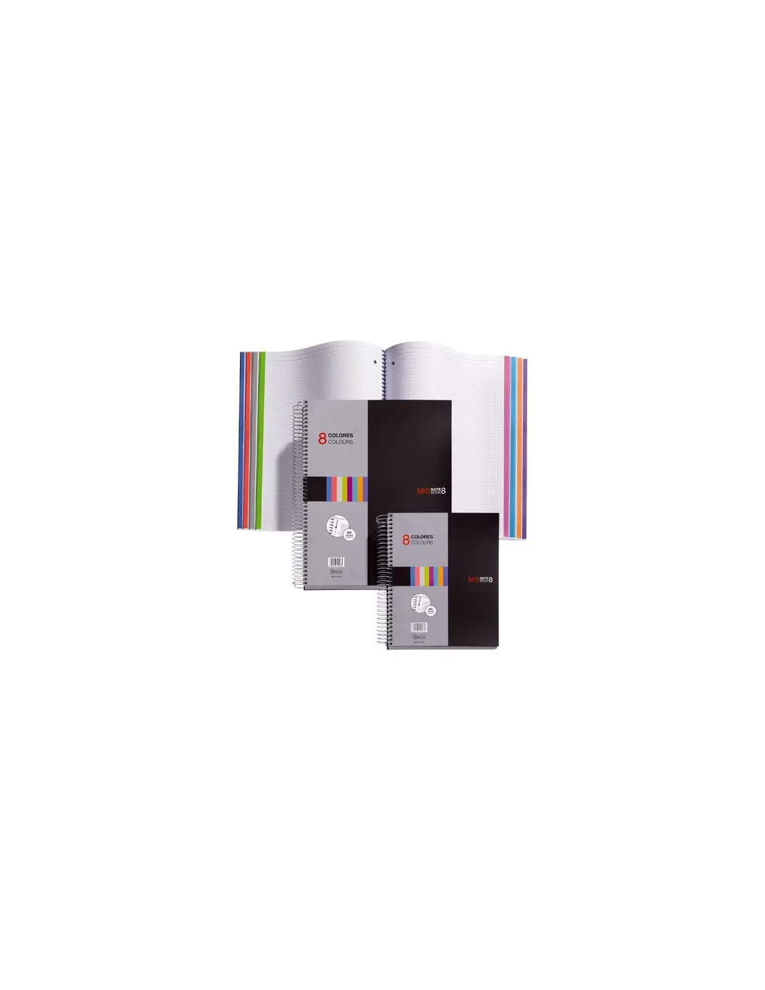 Cuaderno espiral con cubierta de polipropileno. Contiene 200 hojas microperforadas y con taladros para su archivo. Dispone de 8 bandas de colores distintos (25 hojas por color). Din A4.Cuaderno Miquelrius 8 colores A4