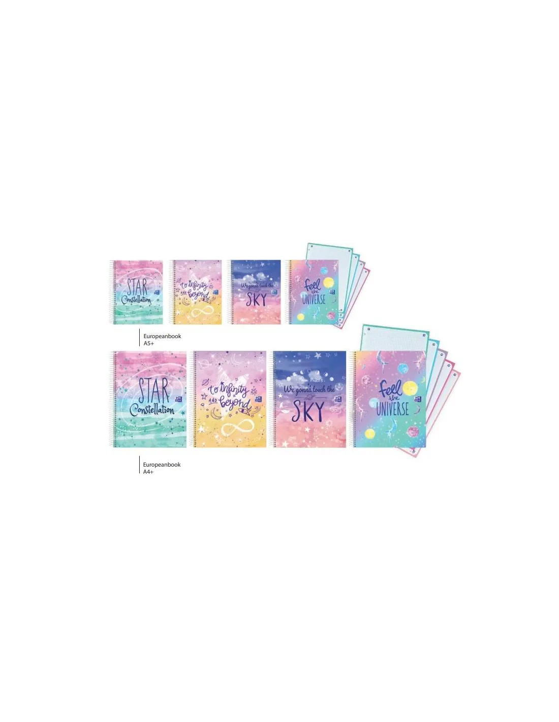 120 HojasEl EUROPEANBOOK 5 GALACTIC PASTEL es un cuaderno espiral de tapa extradura super resistente en A4+ con 120 Hojas. Sus hojas microperforadas y con taladros te permiten arrancar las hojas y archivarlas fácilmente en tu Europeanbinder o Archivador. 5 colores de recuadro tendencia a juego con el diseño del cuaderno. Tapas con acabado mate. Además, éste cuaderno es compatible con la aplicación gratuita SCRIBZEE que te permite escanear, compartir, organizar o consultar tus notas donde quieras con tu smartphone. Descubre los 4 diseños disponibles, inspirados en el universo, las estrellas y las galaxias, con tonos pastel. Diseños surtidos, se sirven aleatoriamente