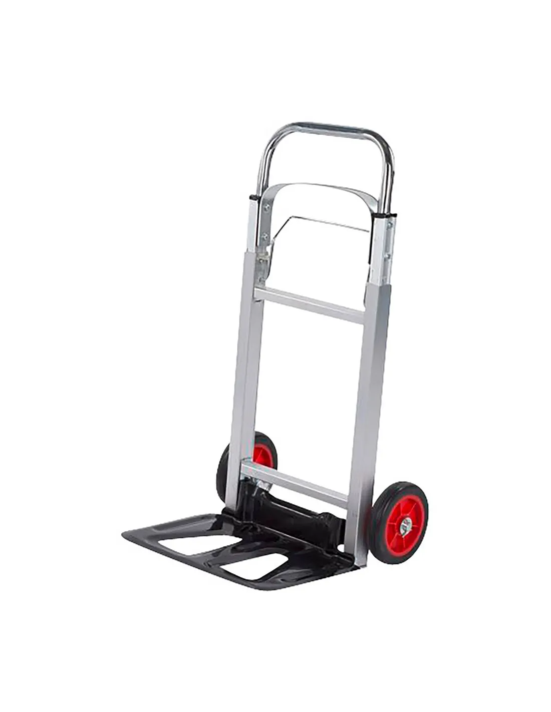 Carro de mano muy compacto cuando está plegado, solo mide 71 cm de alto. Fabricado en aluminio, es un carro muy robusto y muy ligero. Puede soportar un peso de hasta 90 kg y con sus grandes ruedas de goma de Ø150 mm, puedes mover sin esfuerzo grandes cajas y bultos. Además se dobla en segundos, lo que te permite almacenarlo rápidamente. Peso: 4,52kg.
