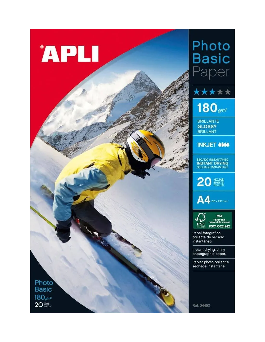 Blister de 20 hojas papel fotográfico Apli Ref 4452 ideal para impresión de inkjet cotidiana de fotografía. Calidad profesional.