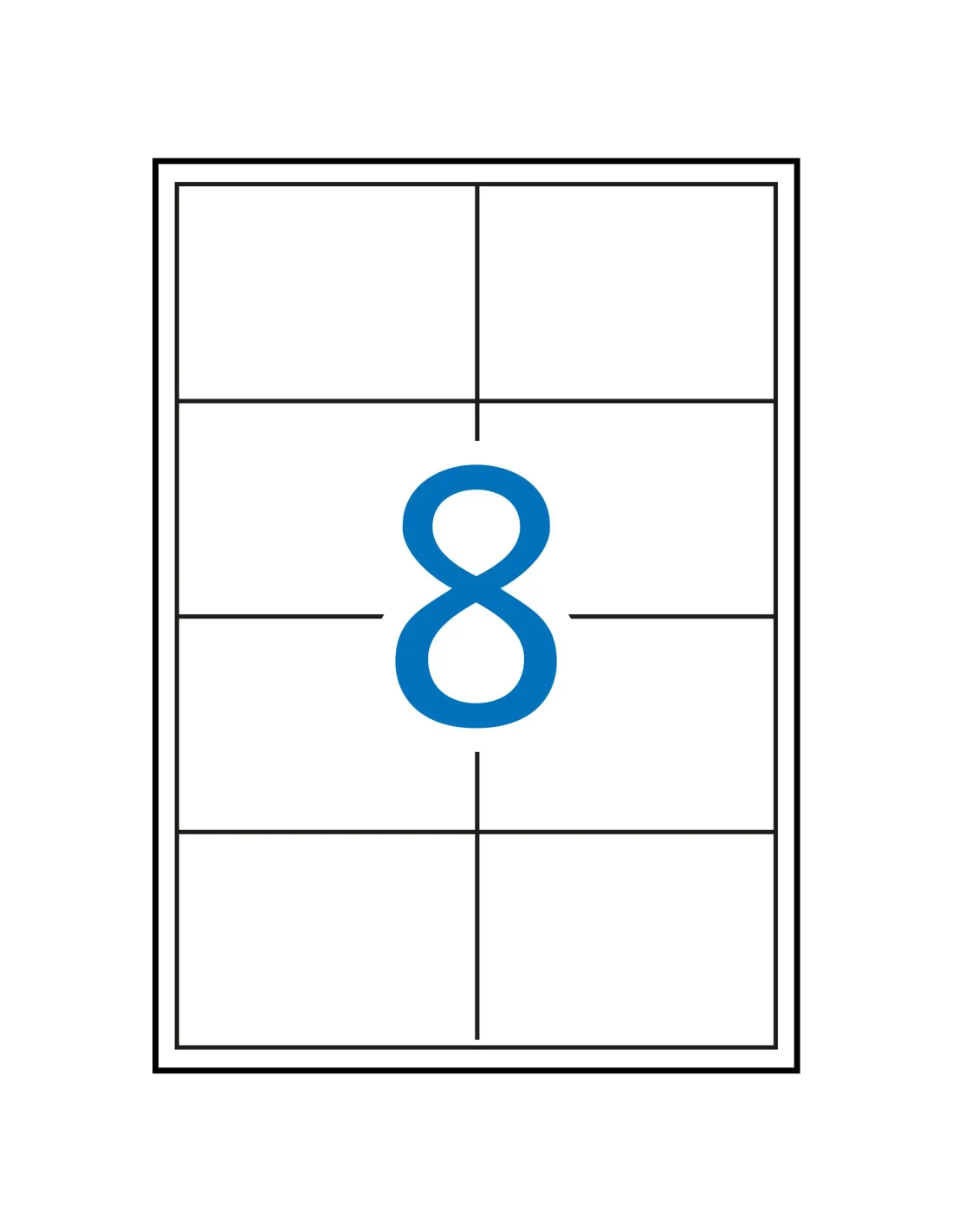 APLIPara fotocopiadoras e impresoras láser e ink-jet. Presentadas en hojas DIN A4 con salidas de 1, 2, 3, 4 o 5 tiras. Salida: 2. Mod. APLI: 01291. Cantidad: 800. Medidas (mm): 97 x 67,7. Formato: 100 hojas. Cantos: Rectos.