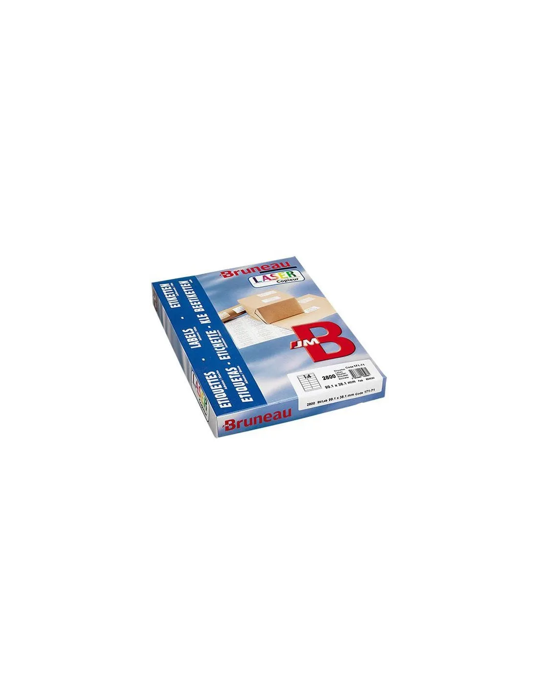 Económicas, prácticas y rápidas, permiten obtener etiquetas autoadhesivas a partir de una hoja única. Etiquetas blancas en hojas A4 (21 x 29,7 cm). Láser: Excelente adherencia de la tinta en el papel. Sin ondulación.Caja 13000 etiquetas 38,1x21,2 cm Laser