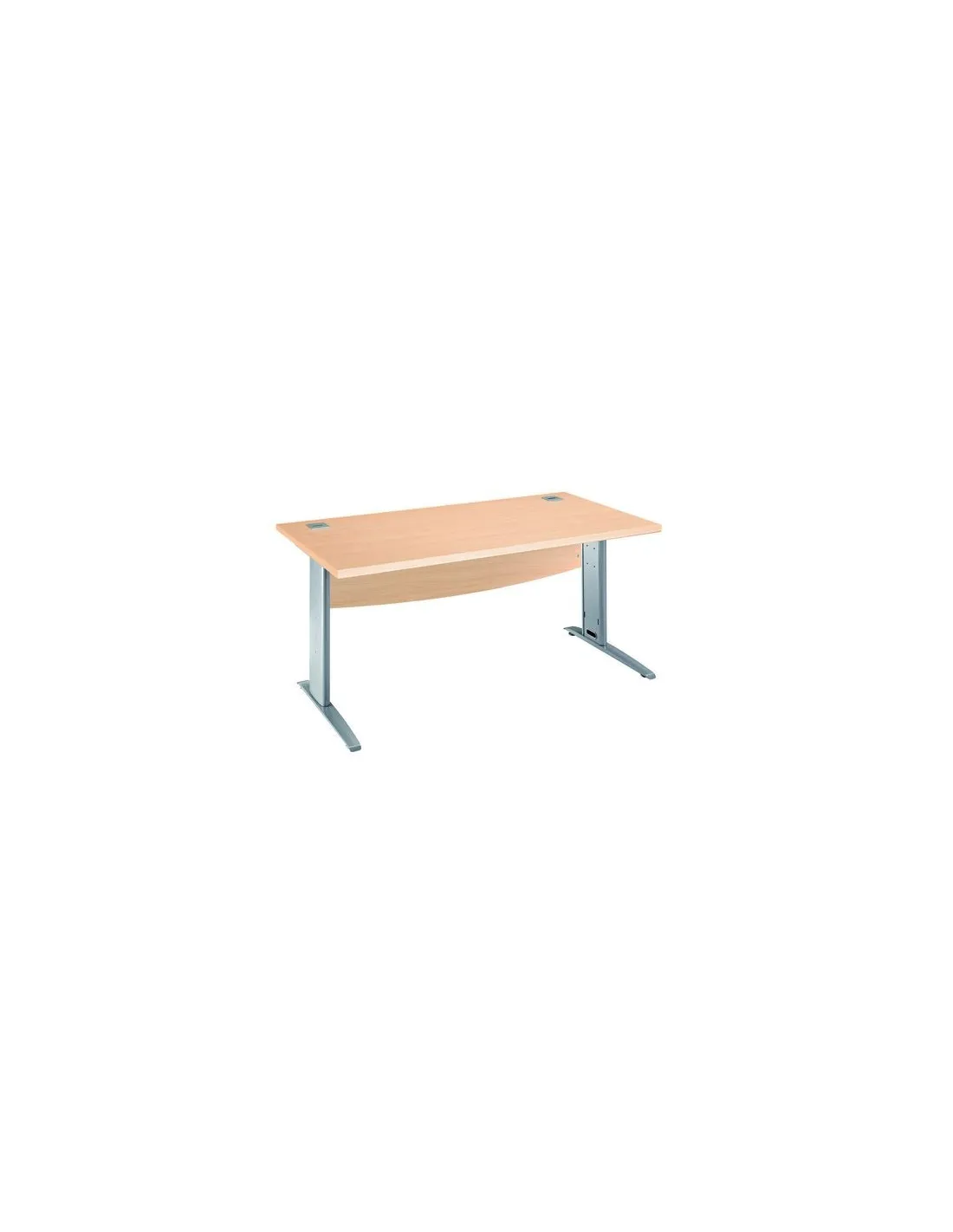 Mesa en patas de metal con un fondo de 80 cm y pasacables en las pata