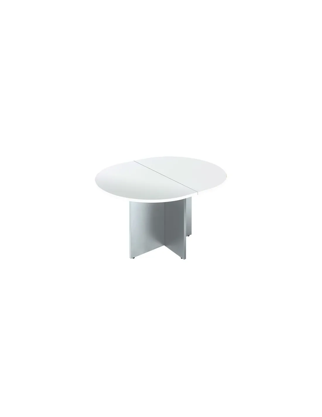Mesa de reunión para tu oficina patas de madera en cruz 2 tableros base como extremos para formar una mesa extensible o unidos formando una mesa de reunión ovalada de 140 cm de largo por 120 cm de ancho, altura 73 cm, se le puede acoplar una extensión de 120 cm, llegando a formar una de 260 cm de largo.