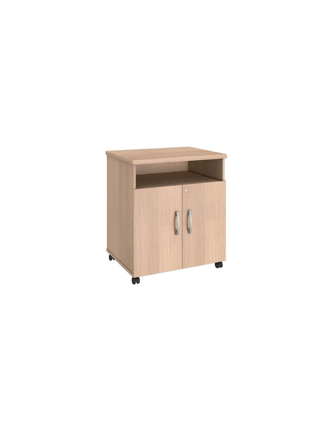 Mueble auxiliar de madera con ruedas para oficina Excellens puede soportar hasta 80 Kgs, ideal para poner impresoras, fotocopiadoras de mesa u otras máquinas esenciales para tu oficina Mueble de oficina de estructura de madera partículas melaminadas. Especialmente adaptado para cargas pesadas hasta 80 kg con 4 ruedas de las cuales 2 tienen freno para una mejor seguridad.