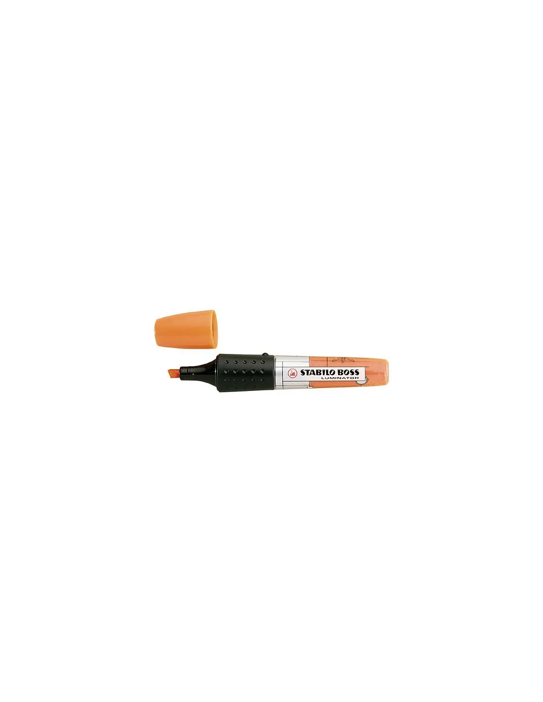 Empuñadura ergonómica. Caudal muy regular. Tinta líquida, nivel visible. Micro-capilaridad. Punta biselada muy resistente (trazo ancho de 1-5 mm). Cuerpo transparente. Naranja.Marcador Fluorescente Stabilo Luminator