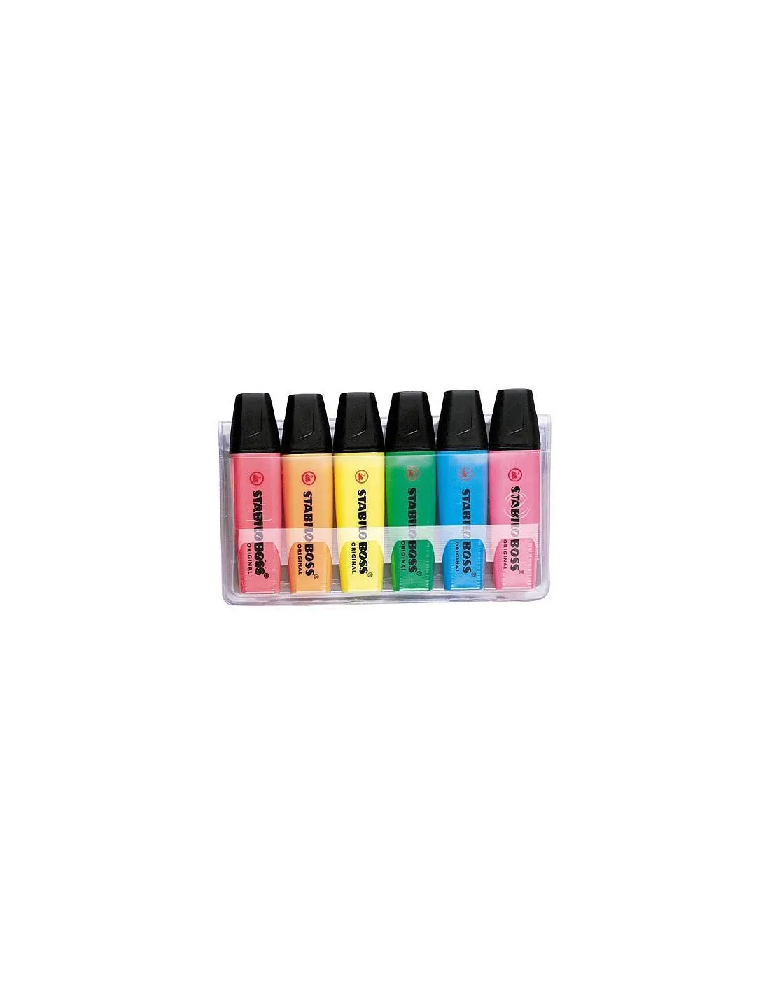 Bolsa surtida Boss Original. 6 colores: amarillo, naranja, verde, rosa, azul, rojo.Bolsa de 6 marcadores Stabilo Boss Original. Variedad de colores para resaltar y subrayas los textos. Punta biselada de 2 a 5 mm