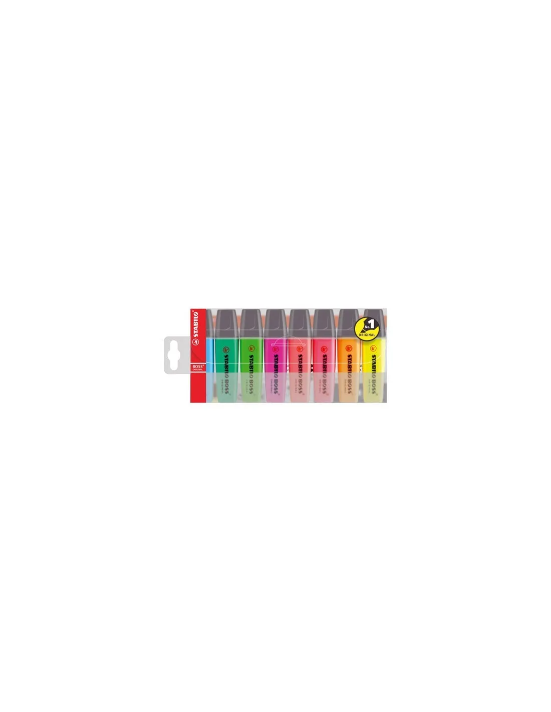 Bolsa surtida Boss Original. 8 colores: amarillo, naranja, verde, rosa, azul, rojo, turquesa, lila.Bolsa 8 marcadores Stabilo Boss