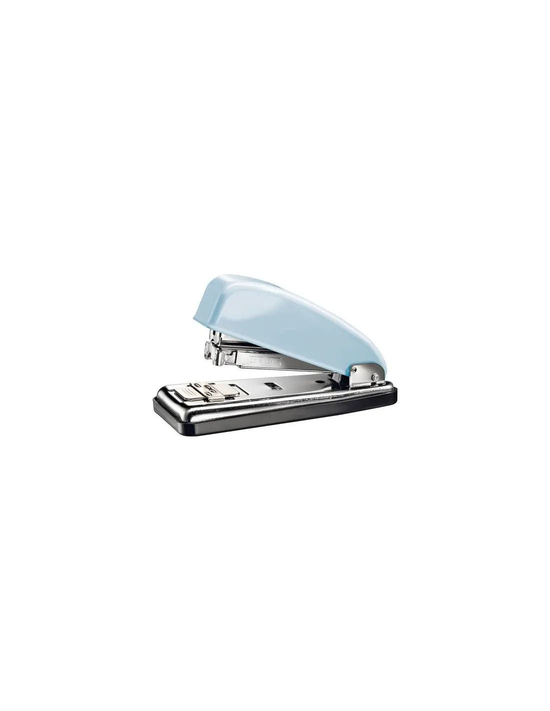 Grapadora de sobremesa metálica. Carga frontal automática. Cubeta de plástico antideslizante en la base. Depósito para 70 grapas. Colores metalizados. Dimensiones: 12,5 x 5,5 x 7,8 cm. Capacidad de grapado 20 hojas. Profundidad de grapado hasta 7,5 cm. Grapado abierto o cerrado. Usa grapas 22/6 y 24/6.Grapadora de sobremesa metálica. Carga frontal automática con depósito para 70 grapas, capacidad de grapado 20 hojas