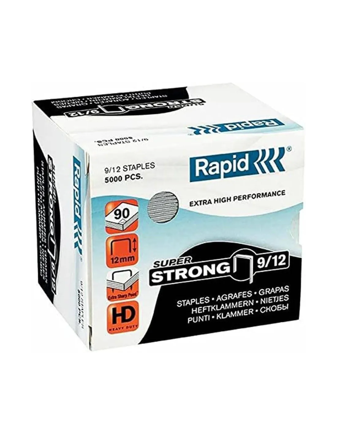 Grapas Super Strong Rapid 9/12 Grapa para gruesos exclusiva. Diseñada especialmente para el modelo HD9 de Rapid. Ofrece los mejores resultados. Grapas Rapid calidad máxima y robustez.