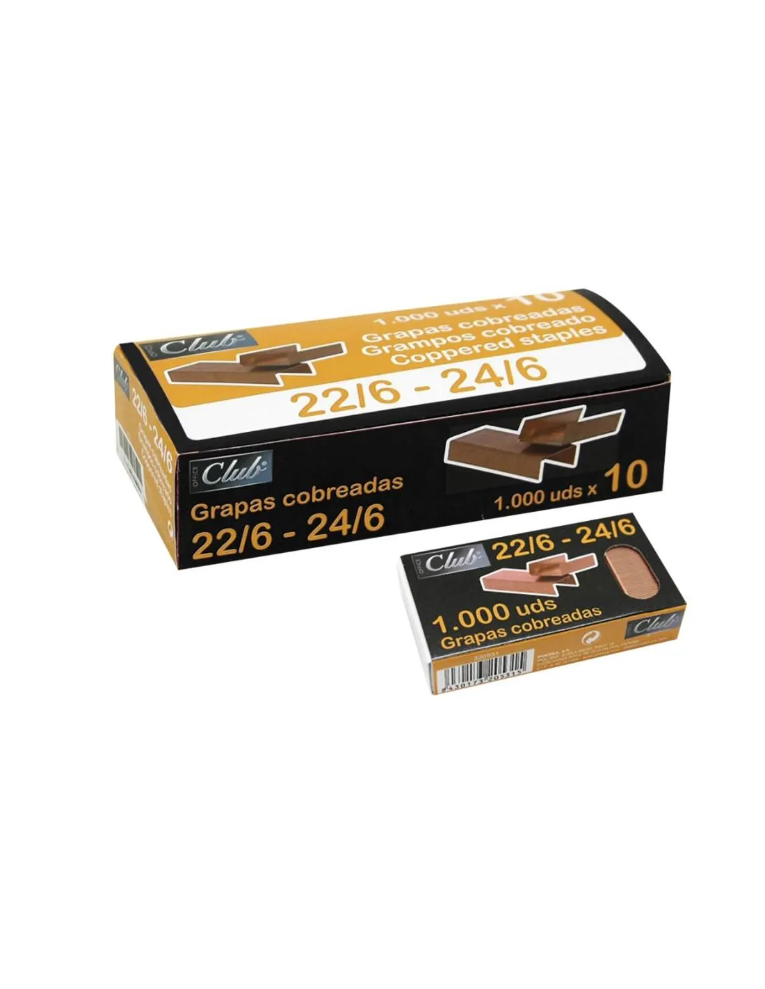 Tipo de grapas: cobradas. Modelo: 22/6 y 24/6. 1000 unidades por caja.