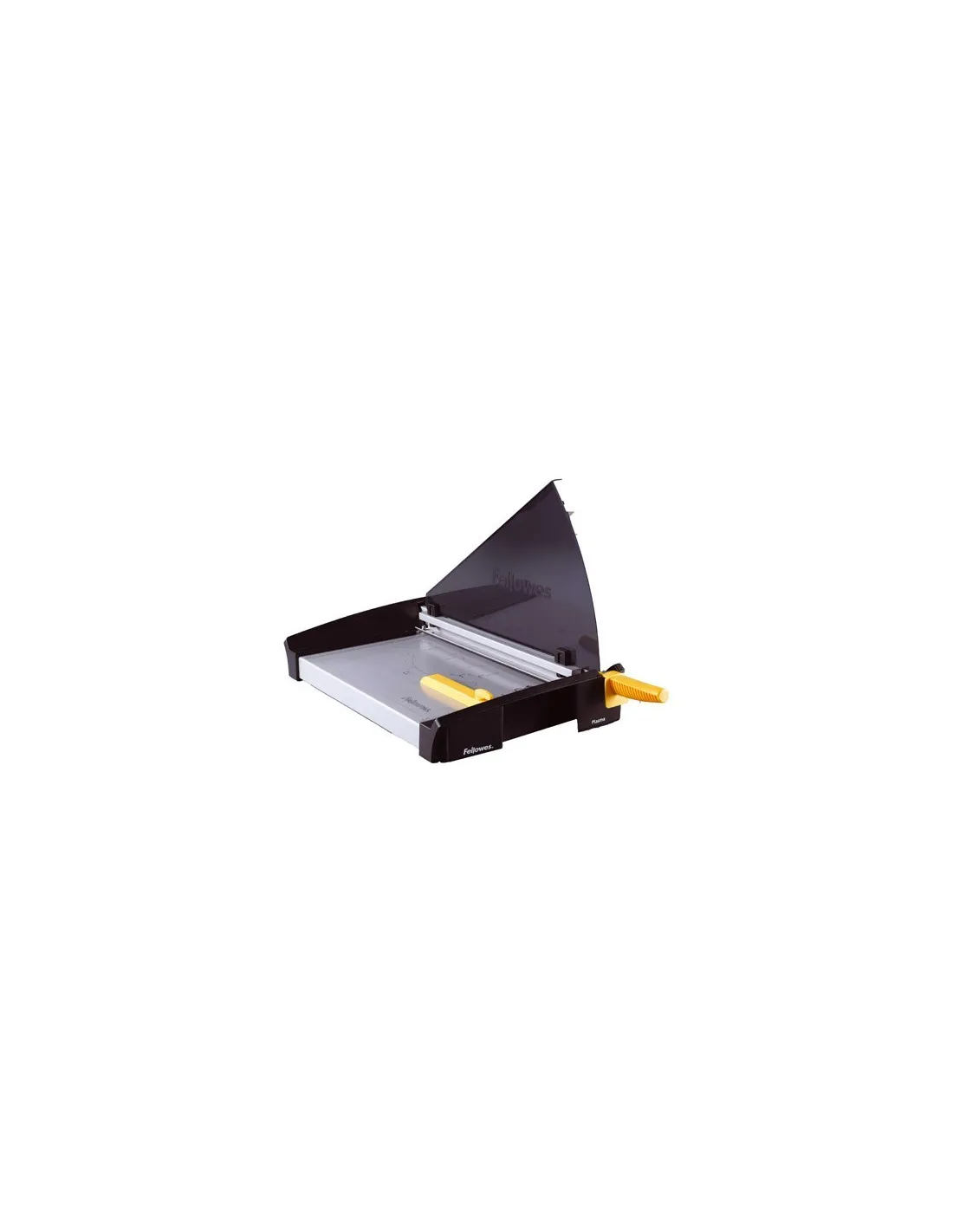Guillotina Fellowes Plasma A4. Guillotina de palanca de gran capacidad. Corte hasta 40 hojas. Cuchilla de corte de acero inoxidable y contracuchilla. Protector de seguridad de cuchilla pre-ensamblado y plegable, para poder almacenar la guillotina con facilidad sin tener que quitar el protector. Base metálica con guías grabadas de formatos de papel, fotos y radios para el corte en ángulo.