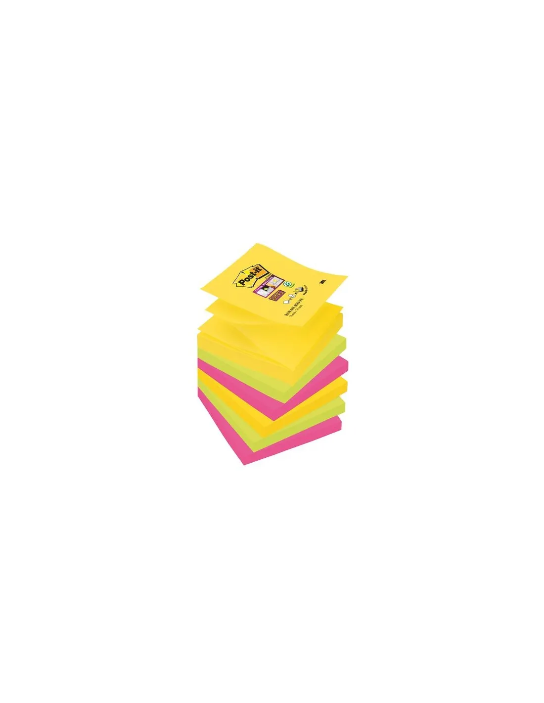 Bloc Pos It Z super sticky 76x76 Rio. Notas en zig zag super adhesivas. Surtido Río: amarillo neón. verde neón y fucsia. Formato 76 x76 mm. Bloc de 90 hojas.Notas en zig zag super adhesivas. Surtido Río: amarillo neón. verde neón y fucsia. Formato 76 x76 mm. Bloc de 90 hojas.