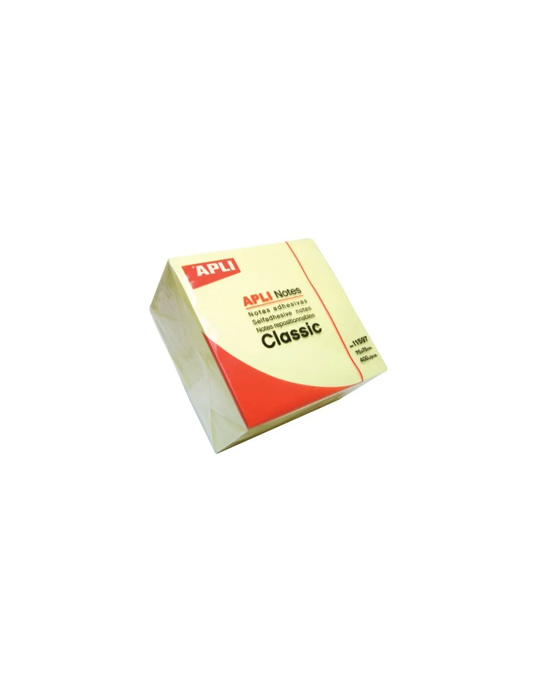 Cubo de 400 hojas adhesivas removibles. Medidas 75 x 75 mm. Color amarilloCubo de notas reposicionables amarillas 75x75mm
