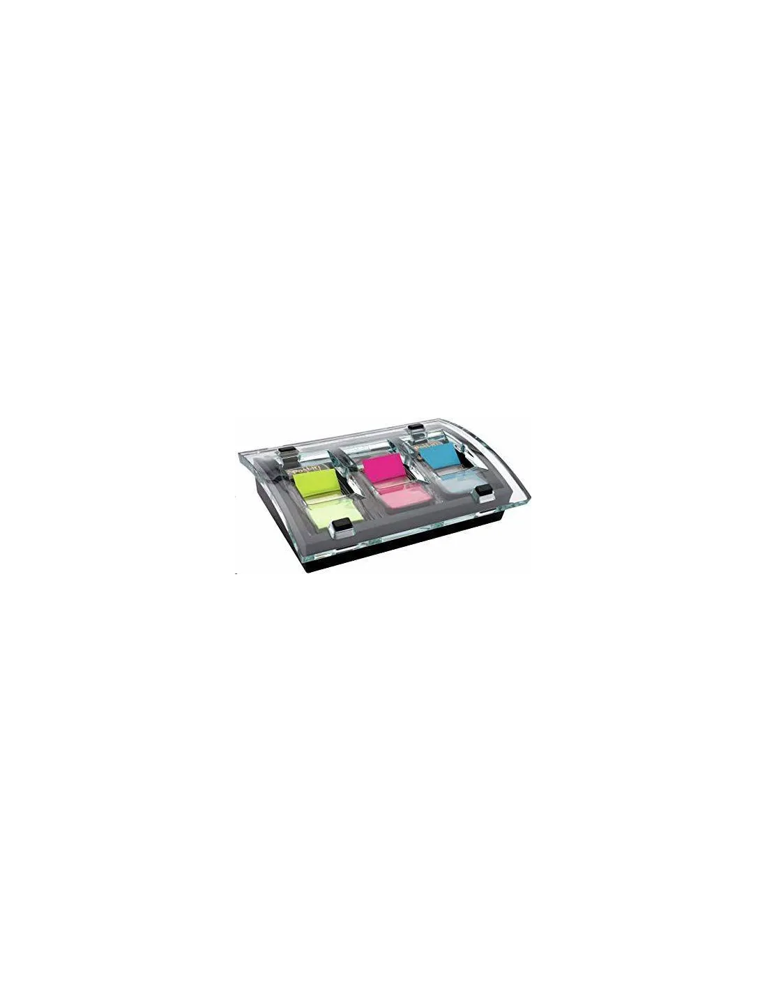 Espacio para 3 dispensadores de 1 pulgada. Dispensador diseñado en metacrilato. Contiene 3 tacos de banderias post-it index 680