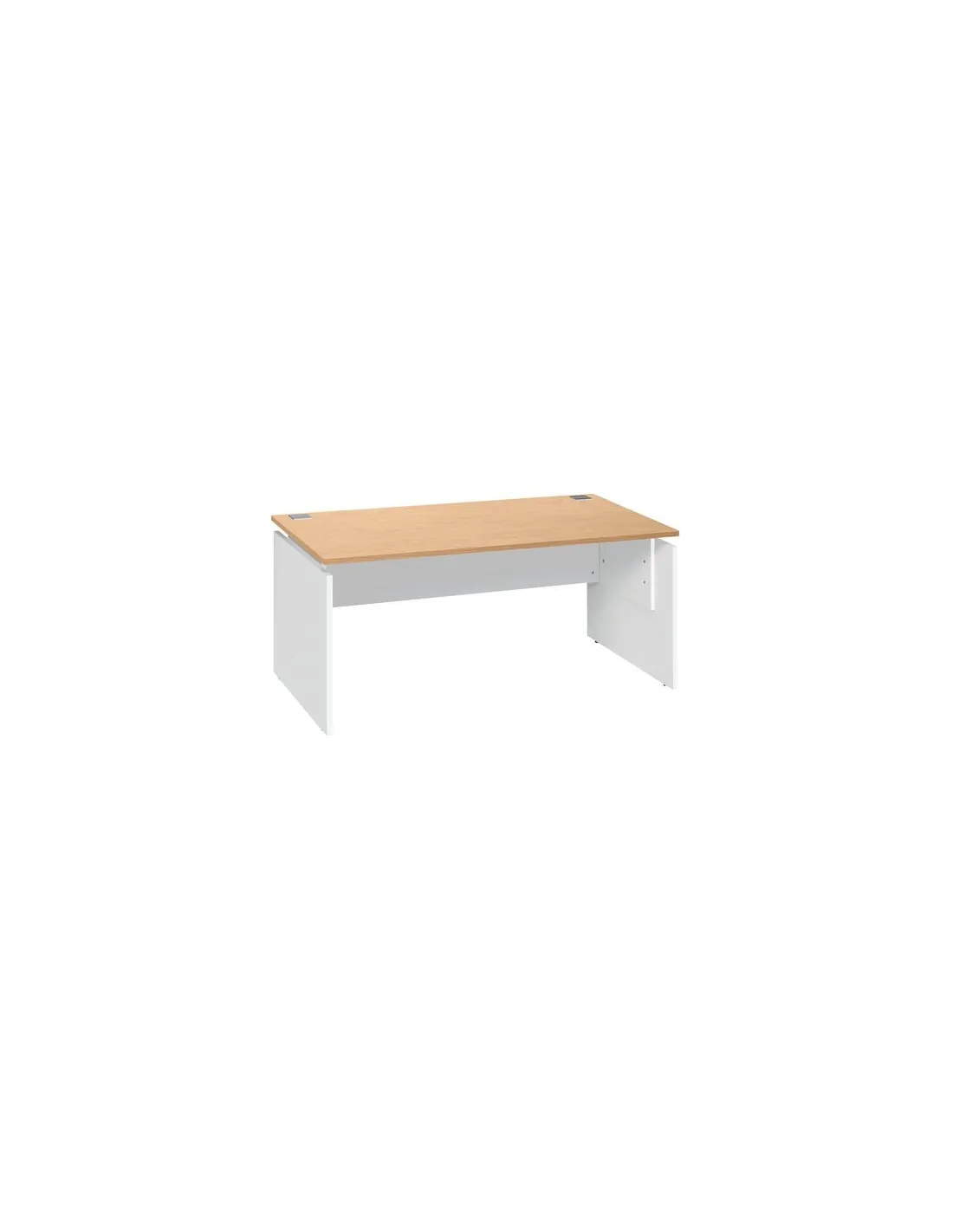 Estructura: tablero paneles de particulas con revestimiento melaminado grosor 25 mm. Cantos rectos antichoque grosor 2mm. Patas rectas con lateral interior blanco que permite la regulación del tablero en altura. Calzos de regulación para los desniveles de suelo. Vela de fondo y pasacables en el tablero. Medidas: An 160 x Fon 80 x Alt 72,5 ; 75,5 o 82 cm.Mesa recta regulable Intuitiv 160 cm Roble